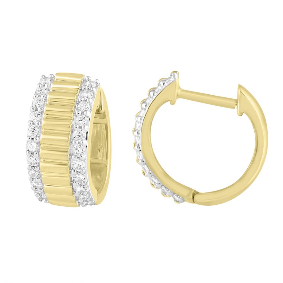 MEN’S HOOP EARRINGS 0.33CT ROUND DIAMOND 10K YELLOW GOLD